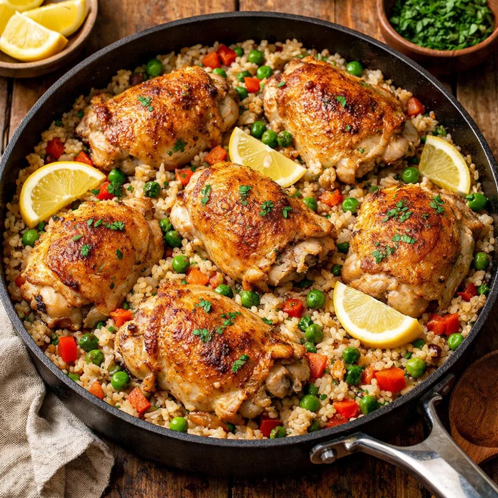 It takes 30 minutes, produces minimal washing up, and can be taken to the table in the pan it was cooked in. It scales easily for a group, requires only pantry staples, and looks more impressive than the effort required.